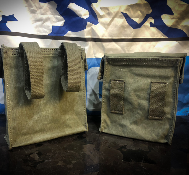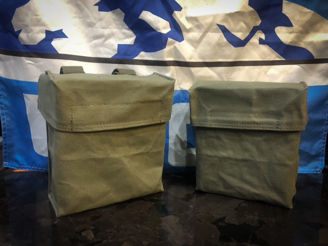 Pouches: Belt Height & Drop Loops variants. Made from OD green canvas.